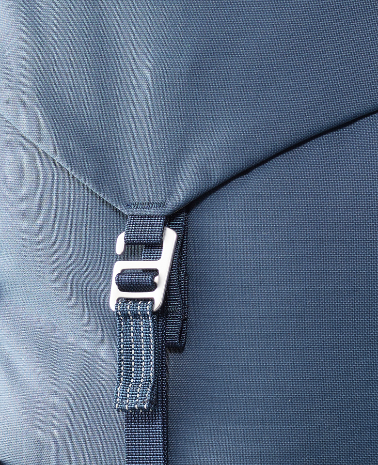 베르그쉘은 국제 재생 협회 인증을 받은 친환경 재생 나일론으로 만들어졌으며, 안쪽에는 화이트 TPU(Thermoplastic polyurethane, 열가소성 폴리우레탄) 라미네이트 처리를 하여, 10,000mm의 완벽한 방수성능을 갖추었습니다. 가장 특징적인 것은 평평한 플랫 립스탑 구조로, 일반적인 립스탑 섬유가 울퉁불퉁한 표면으로 살짝 튀어나온 구조를 갖고 있는데, 이로 인해 립스탑 섬유는 마찰에 약한 특징이 있습니다. 하지만 베르그쉘의 혁신적인 플랫 립스탑 구조는 마찰력을 표면 전체로 분산시켜 마찰력이 증가되어도 효과적으로 견딜 수 있게 했습니다.