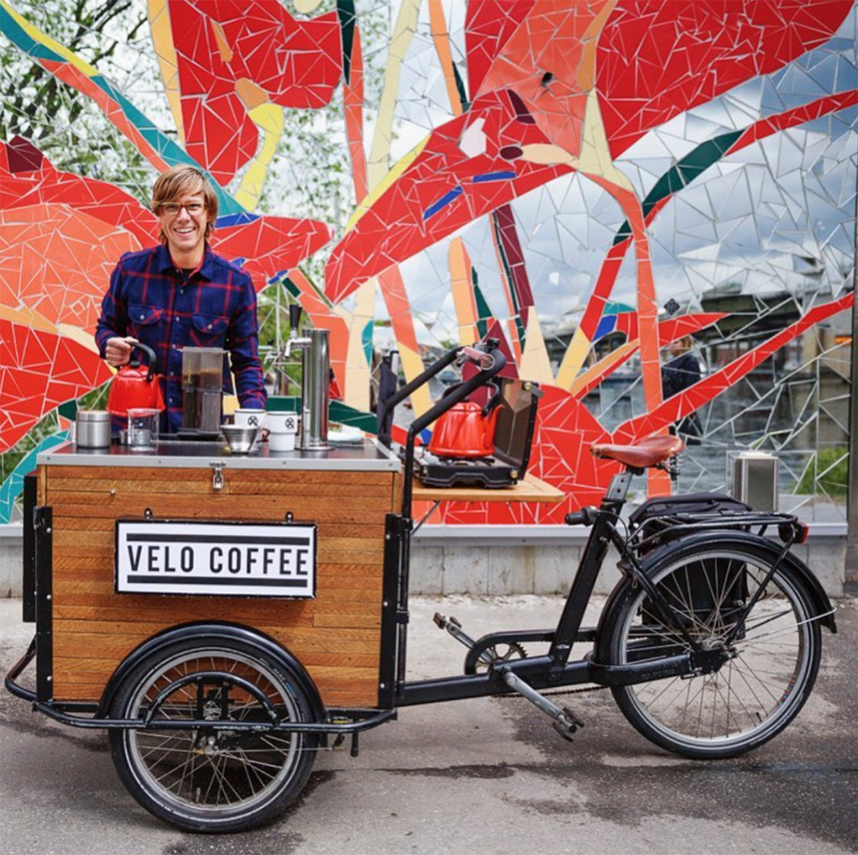 Figure 2. 스웨덴 스톡홀름에서, 차드와 그의 커피 바이크