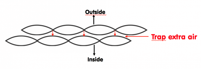 “다운 자켓의 보온력에 영향을 미치는 요인은 세가지가 있습니다. 바로 밀도(자켓에 얼마나 많은 다운이 충전되어 있는지), 제품 구조, 그리고 다운을 감싸고 있는 패브릭의 종류입니다.”