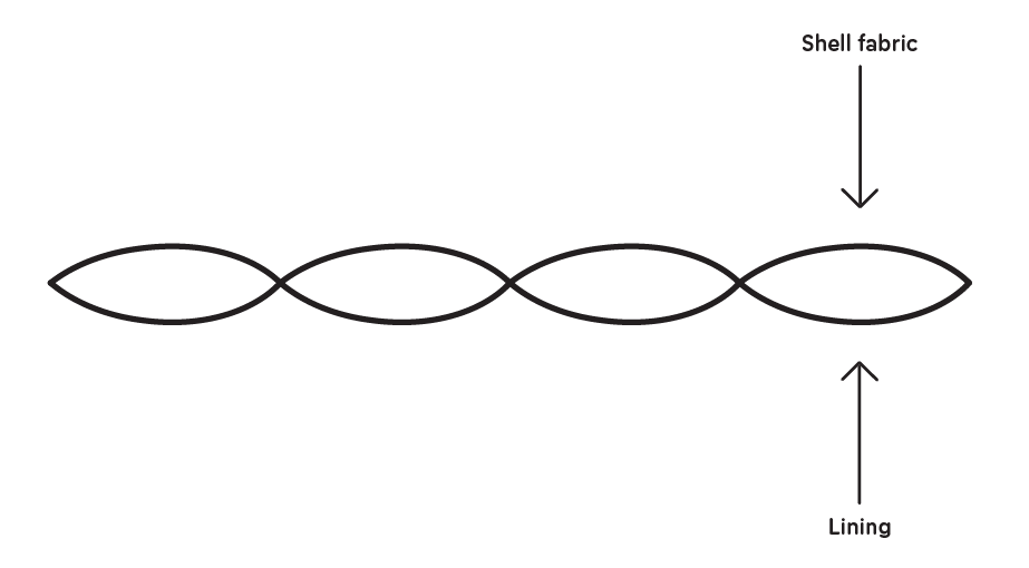 이 중 자켓의 구조는 매우 중요해서 우리가 늘 더 개선하기 위해 테스트를 거듭하기도 하는 부분입니다. 우리는 세가지의 기술을 사용합니다. 첫번째는 가장 흔히 사용되는 sew-through 구조입니다. “자켓 내부에 단을 나누어 다운을 충전하는거죠. 패킹하기 쉬운 초경량 자켓을 만들기에 적합한 방법이지만, 터널과 터널 사이의 봉제선에 냉점이 생기게 됩니다” 슈페이는 설명합니다.