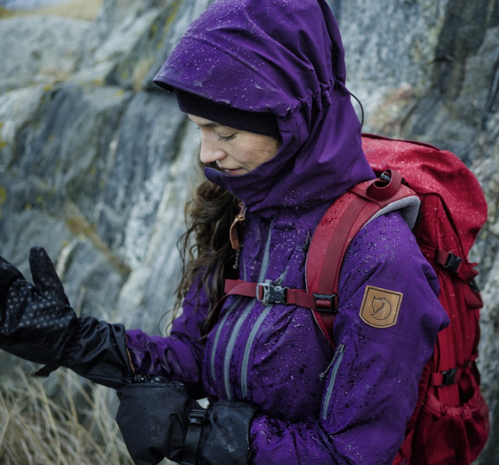 그러나 만약 하늘에 구멍이 뚫린듯 폭우가 쏟아진다면, 결국에는 물방울은 코팅을 뚫고 침투하게 됩니다. 이는 많은 양의 물이 패브릭에 압박을 가했기 때문입니다. 이런 경우, 피엘라벤의 에코-쉘과 같은 쉘 소재가 활약을 하게 됩니다. 쉘 소재는 강한 수압도 이겨내기 때문에 waterproof 소재라고 볼 수 있습니다.