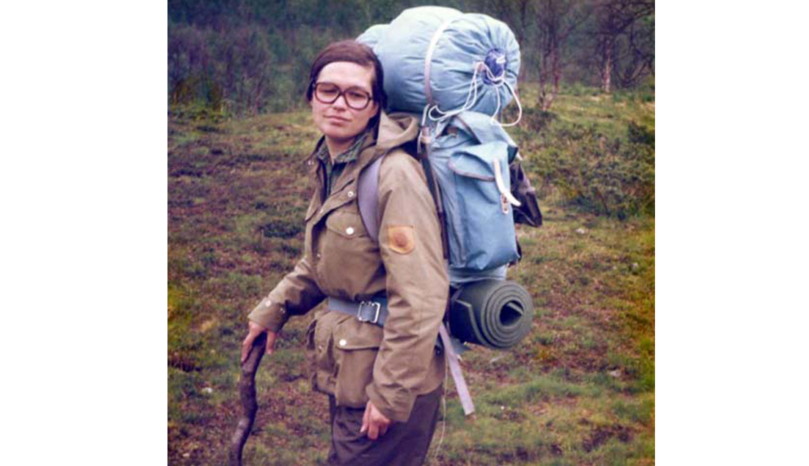 1977년 쉐딘이 그린란드 자켓과 카즈카 배낭을 메고 트레킹에 나섰다