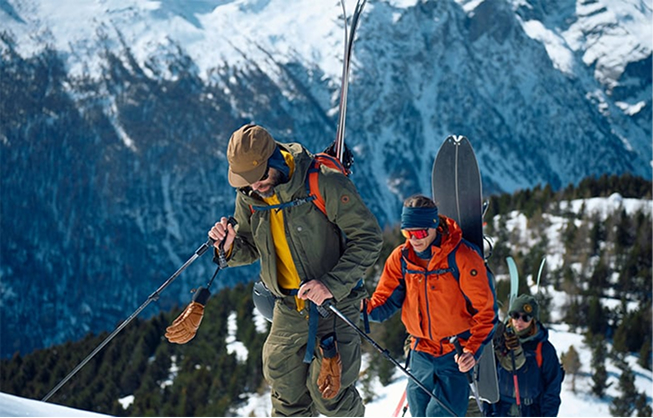 베르그타겐은 최고의 보호력을 제공하는 고어텍스(GORE-TEX) 기술이 적용된 고성능 하드쉘부터 내구성과 통기성을 갖춘 피엘라벤의 오랜 시간 검증된 G-1000 레어어, 그리고 수목한계선 위에서의 삶을 위한 편안한 보온의류 및 스키 장비 수납과 실용성을 제공하는 백팩에 이르기까지 다양한 제품군을 선보입니다.